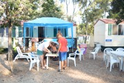 Dnes jsme den zahájili bramborovou štafetou. Vše probíhálo podle pravidel a vypadalo to, že jedno družstvo určitě vyhraje. Ale..... Najednou se strhla bitva o hrnce a jedno družstvo kradlo brambory druhému. Nakonec jsme museli vyhlásit remízu. Hlavně, že je na oběd připraveno!!!! Dnes si pochutnáme na vepřovém přírodním plátku s bramborem a polévka bude zeleninová.