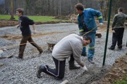 Brigáda v Kajlovci - podzim 201414.-17.11.2014Úprava táborové základny. Oplocení bazénu, kopání kanalizace, zámková dlažba před vstupem do jídelny, příprava místnosti pro saunu, úpravy terénu apod.. Nejsme přece žádná béčka.... 001 / 421