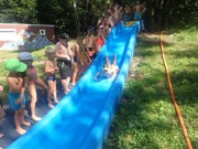 Stavění chýší, skluzavka, pravěká zábava, večerní kmenová rada