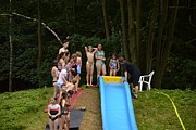 Ráno dneska rozvička nebyla, měli jsme pozdní snídani v pyžamech. Dopoledne jsem hledali indicie a pak klíče a truhlu se srdcem Davyho Jonese. Bylo to napínavé do poslední chvíle. Odpoledne bylo vedro, tak jsem zase vyčistili a zprovoznili skluzavku. Podvečer pomalu balíme a chystáme se na odjezd. Po večeři byla diskotéka a děti si cchodili pro odměny za vítězství na táboře.
