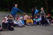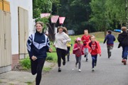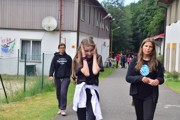 rozcvička s kostýmy, pamatovák a úklid tábora, krabičkovaná, diskotéka