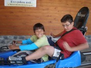Dnešní den jsme vyrazili na výlet. V táboře se už několik dní šíří panika, že pojedeme na bazén, do kina, na Praděd, Lysou Horu a nebo na Kružberk. Nakonec jsem vyrazili do HEIparku na bobovou dráhu. Byli jsme na opičí dráze, skluzavkách a na bobovce samotné. Po 4 hodinách v areálu jsem zase vyrazili na vlak a jeli do tábora. Večer byla diskotéka.