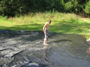 Snídaně v pyžamu. Dopoledne rozstříhaná zpráva v lese. Odpoledne kostkovaná a naše oblíbená skluzavka!!!
