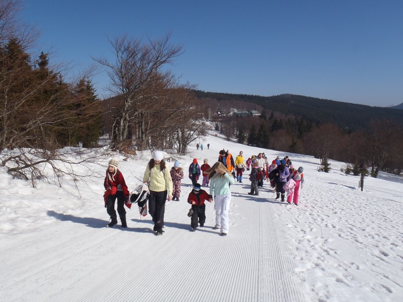 Dneska jsme si udělali výlet. Vyšli jsme si na Radhošť. Procházka to sice byla delší, ale o to hezčí. Odpoledne máme odpočinkovou chvilku u her v klubovně. Po večeři jsme si pustili pohádku a ti odvážnější šli na noční lyžování.