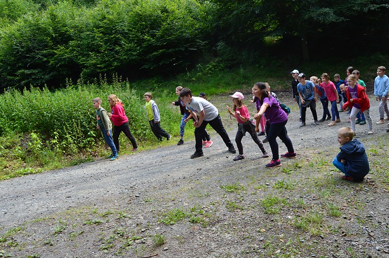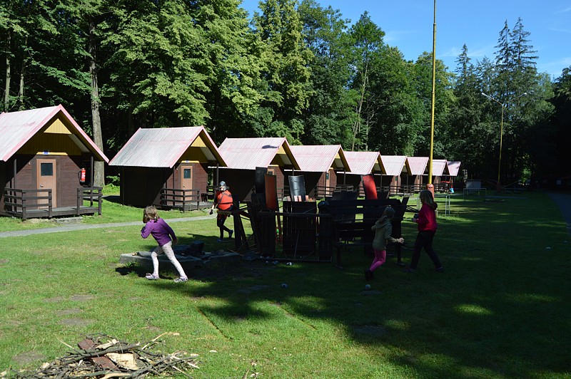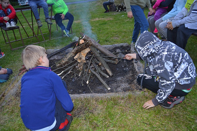 Rozcvička, útok keltů, důvěra, procházka lesem, táborak, stezka odvahy
